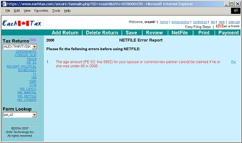 You must fix all the errors identified by EachTax.com web application before you can proceed to NetFile your return(s). Please also review each warning (reminder) message to make sure that your return is complete and no information is missing.